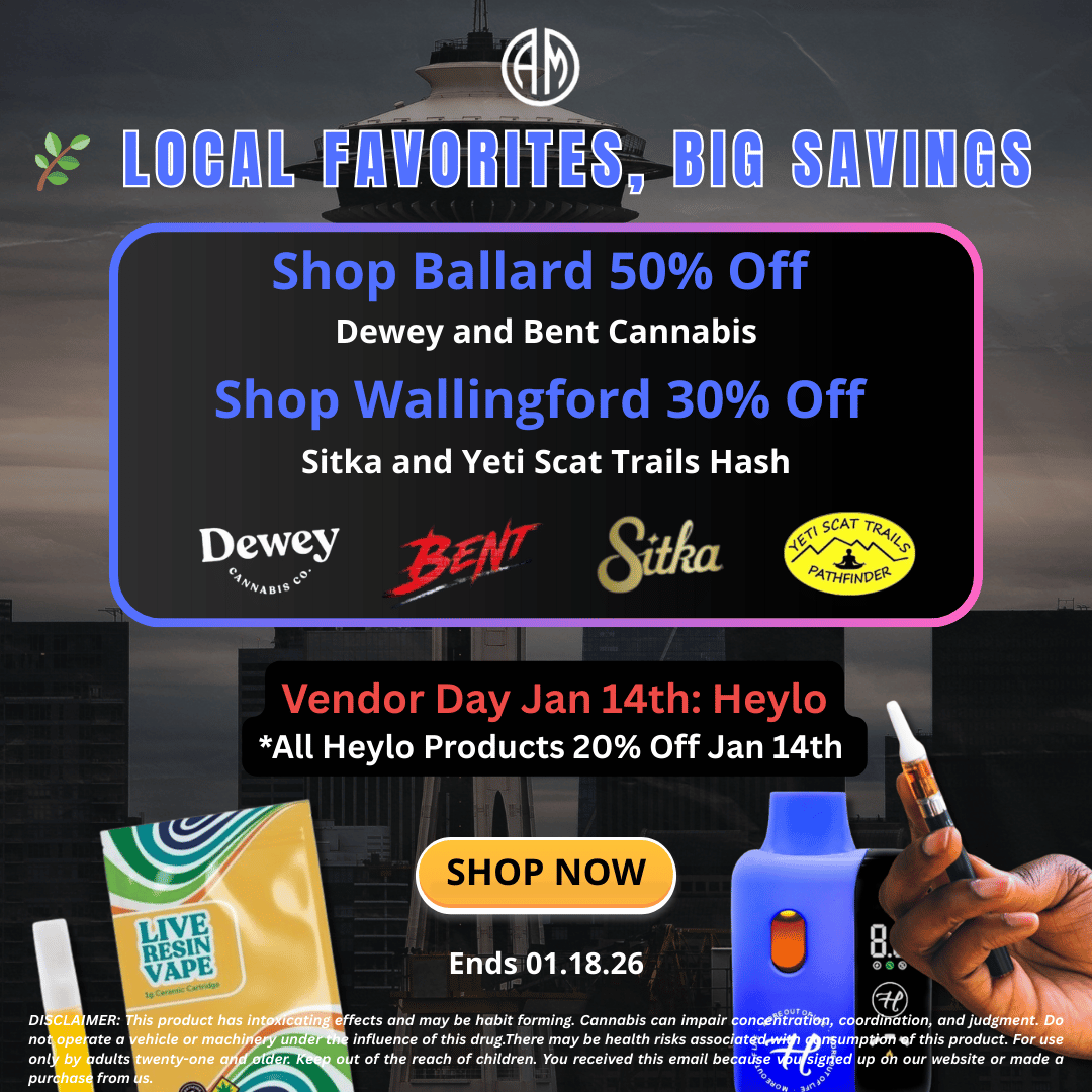 Earn 1 point every visit and cash in on rewards like 10% OFF at 10 points, 20% OFF a single item at 14 points, 20% OFF your entire order at 20 points, and VIP for Life (10% OFF every order) at 100 points. Plus, stack your savings with our daily deals on flower, concentrates, edibles, and more — loyalty has never looked this good.